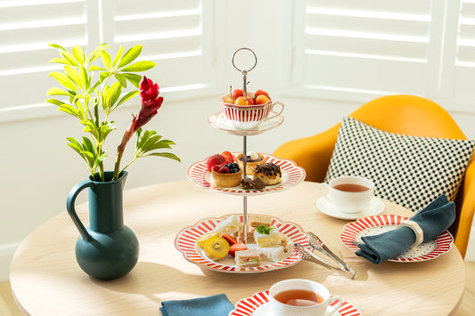Red Josephine Stripes and Dots Fine Porcelain 3-Tier Server