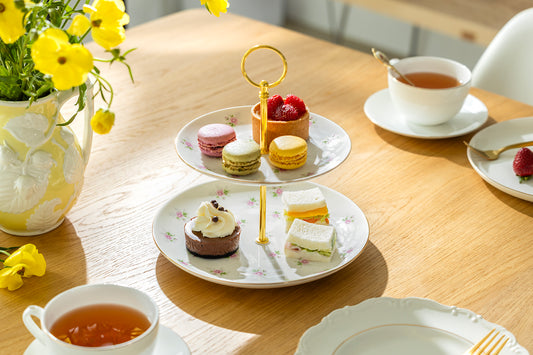 Spring Flowers with Hummingbird Fine Porcelain 2-Tier Server