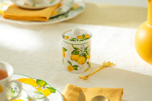 Lemon Garden Fine Porcelain Spice Jars with Silicone Gasket Set of 2