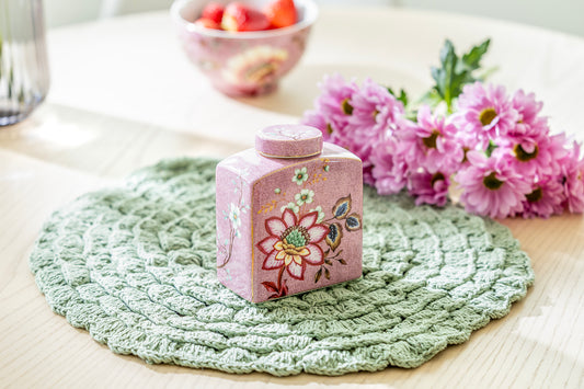 Peacock Lotus Garden Pink Fine Porcelain Jar