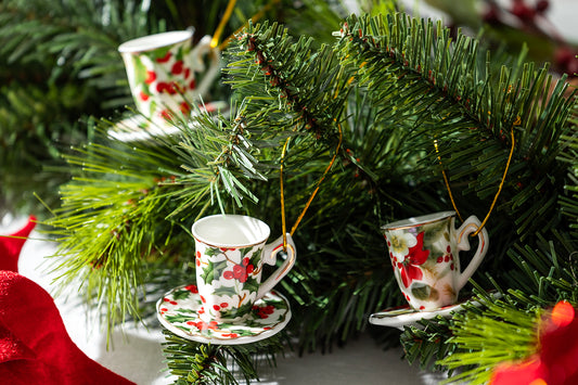 Holly Berries and Poinsettia Assorted Mini Teacups Ornament Set of 6