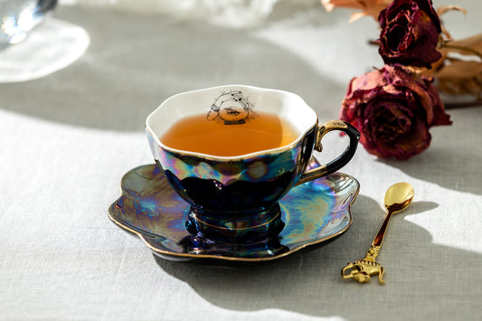 Witchy Crystal Ball Black Gold Luster Tea Cup and Saucer