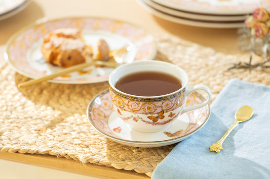 Butterflies with Pink Ornament Fine Porcelain Cup and Saucer