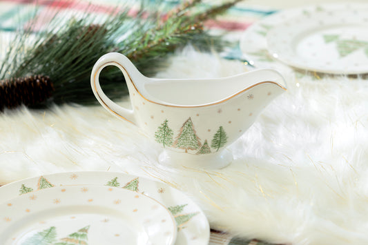 Christmas Pine Trees Fine Porcelain Gravy Boat