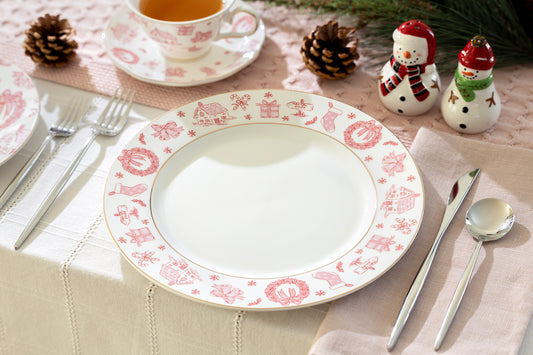 Christmas Pink Bow Fine Porcelain Dinner Plate