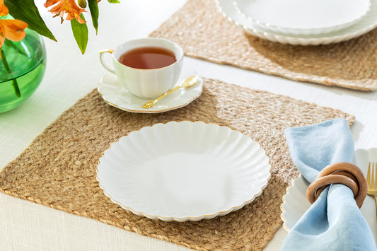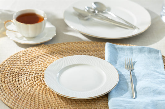 Turquoise and White Scallop Fine Porcelain Dessert Plate
