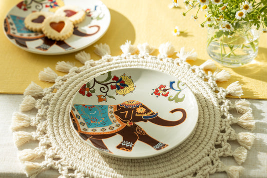 Floral Elephant Hand Crafted and Painted Dessert Plate