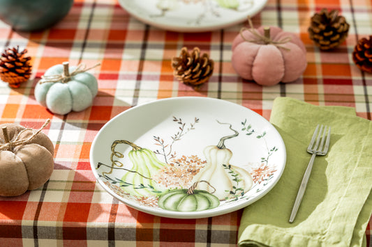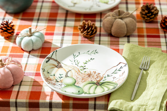 Fall Pumpkins with Holly and Acorns Dessert/Salad Plate
