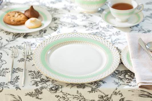 Mint Green Stripe with Gold Dots Fine Porcelain Dinner Plate