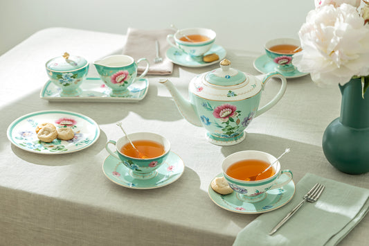 Mint Flower Garden Fine Porcelain Sugar Creamer & Serving Tray Set