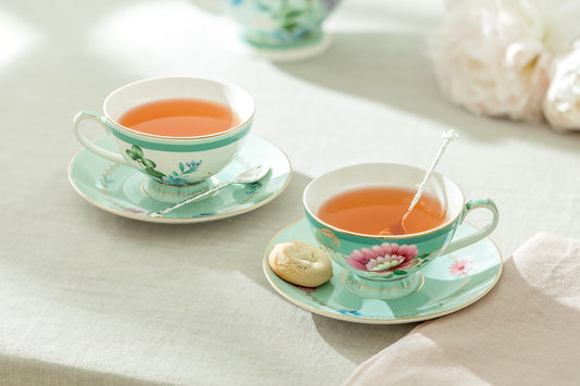 Mint Flower Garden Fine Porcelain Cup and Saucer Set of 2