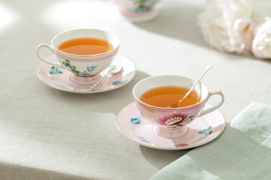 Pink Flower Garden Fine Porcelain Cup and Saucer Set of 2