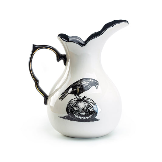 Halloween Witches Brew Pitcher with Raven Jack-o'-lantern on the back - Black Version