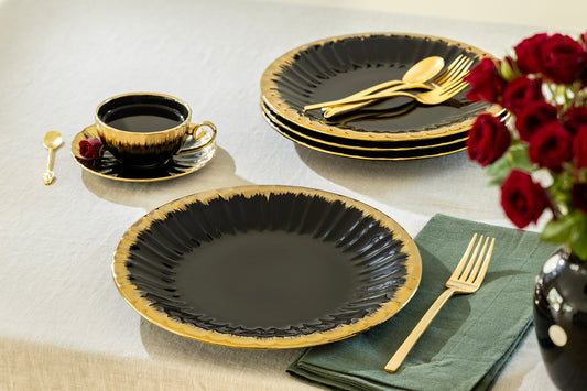 Black Gold Ripple Fine Porcelain Dinner Plate