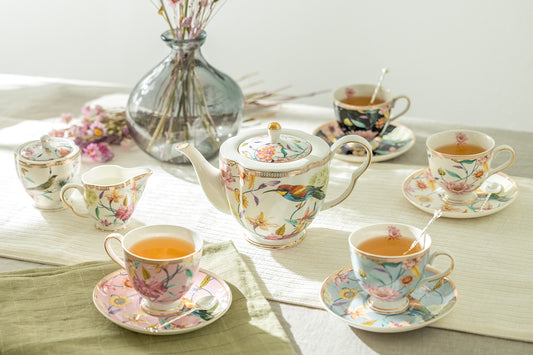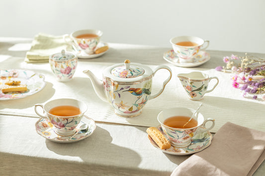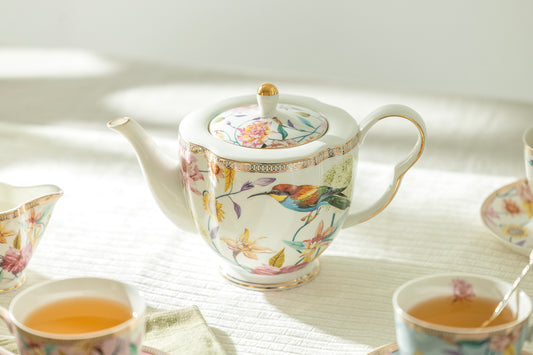 Spring Flowers with Hummingbird Fine Porcelain Tea Set