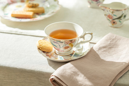 Spring Flowers with Hummingbird Fine Porcelain Tea Cup and Saucer