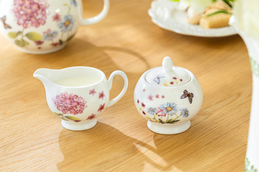 Hydrangea with Butterflies Fine Porcelain Sugar & Creamer Set
