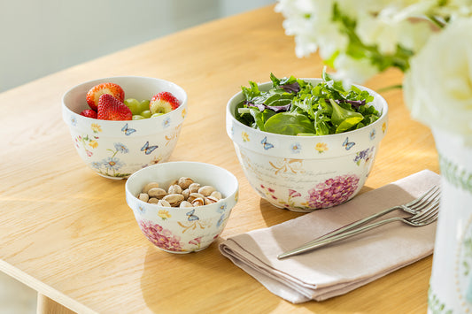 Hydrangea with Butterflies 3-Piece Bowl Set