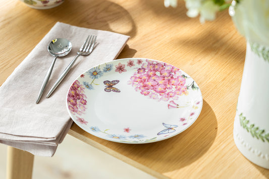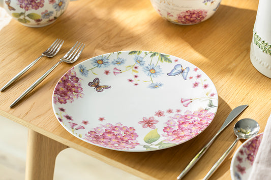 The Hydrangea Garden collection showcases elegant fine porcelain tableware with delicate hydrangea and butterfly designs. Ideal for spring gatherings or as a thoughtful Mother’s Day gift, it includes teapots, dessert plates, casseroles, and more, blending charm and functionality.