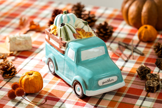 Fall Pumpkin Harvest Mint Truck Cookie Jar