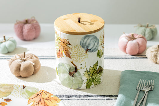 Fall Pumpkins with Leaves Canister with Bamboo Lid
