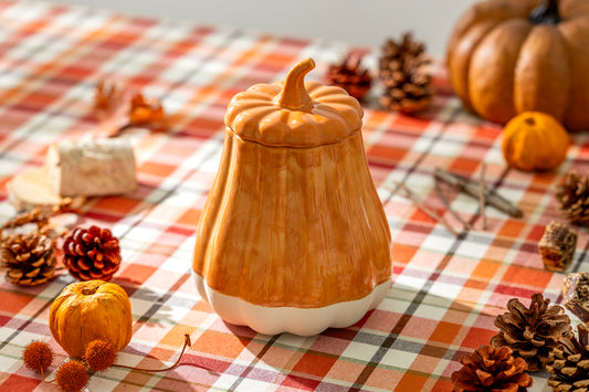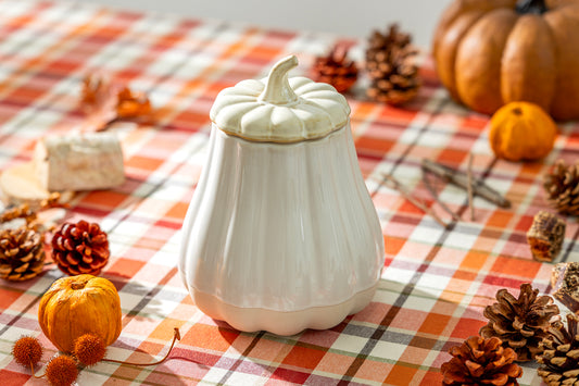 Pumpkin Figural White Reactive Glaze Jar with Silicone Seal Lid