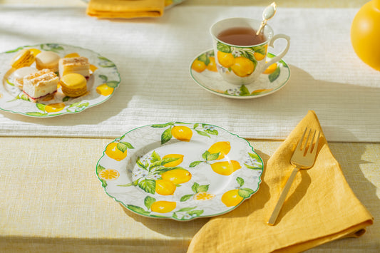 Lemon Garden Fine Porcelain Tea Cup and Saucer
