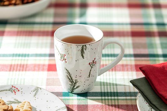 Festive Pup and Tree Fine Porcelain Latte Mug