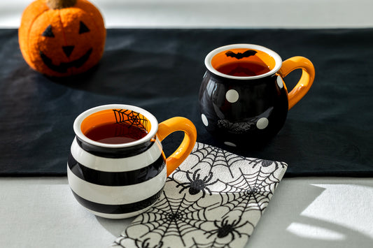 Halloween Bat Dots and Spider Web Stripes Mugs