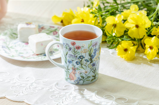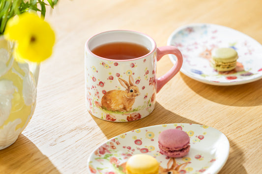 Flower Bunny Bone China 4-Color Assorted Mugs