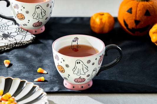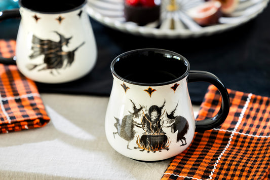 Festive Holiday Elf and Santa Fine Porcelain Latte Mug