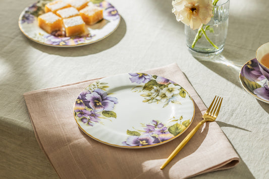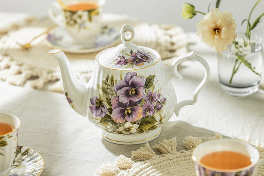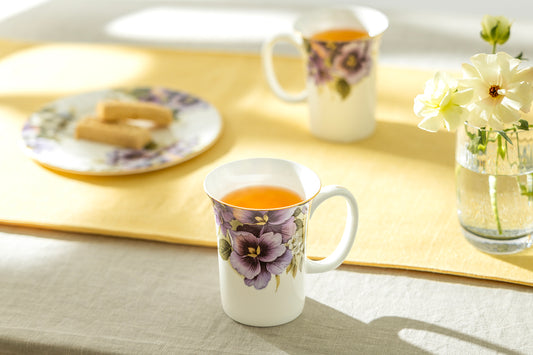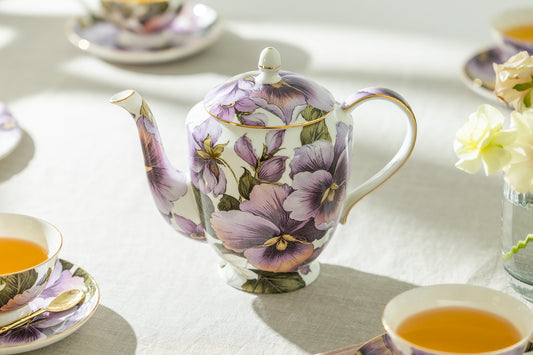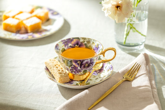 Purple Gold Pansy Bone China Tea Cup and Saucer