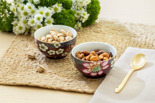 Peacock Lotus Garden Plum Blossom Fine Porcelain Tidbit Bowls Set of 2
