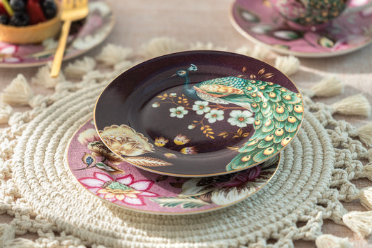 Peacock Lotus Garden Pink Fine Porcelain Dessert Plate Set of 2