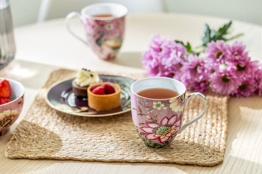 Peacock Lotus Garden Pink Fine Porcelain Mug