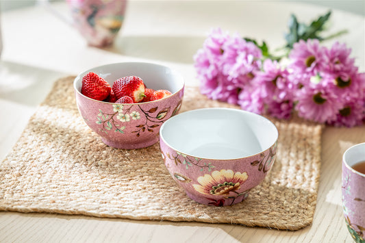 Peacock Lotus Garden Pink Fine Porcelain Bowl