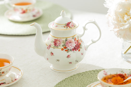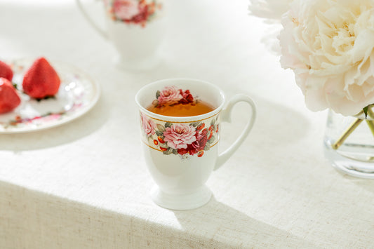 Peony and Strawberry Mint Bone China Tea Cup and Saucer