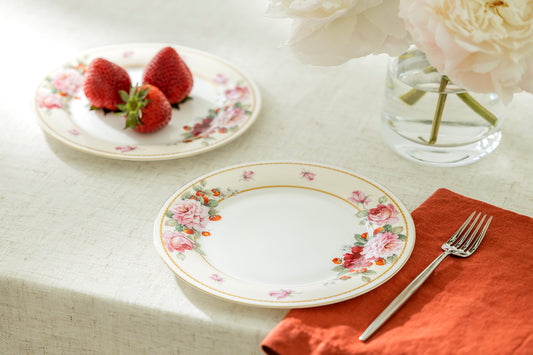Peony and Strawberry Cream Bone China Tea Cup and Saucer