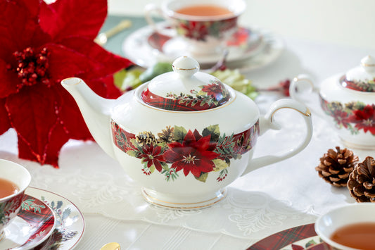 Poinsettia Pine Cone Fine Porcelain Tea Set