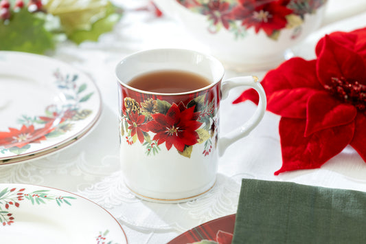 Poinsettia Pine Cone Fine Porcelain Mug