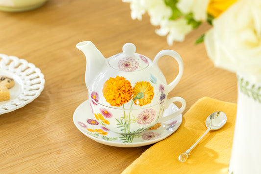 Dahlia Bloom Fine Porcelain Tea For One Set