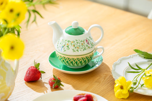 Emerald Geo Bloom Fine Porcelain Tea For One Set