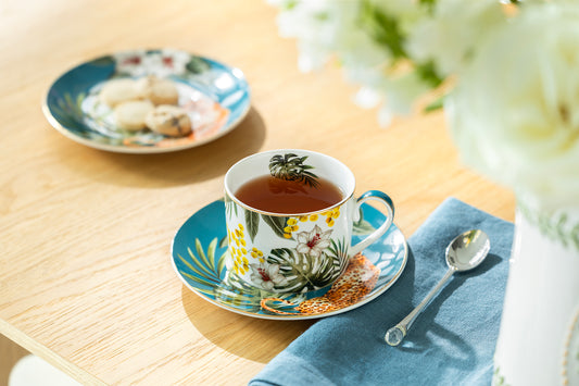 Summer Savanna Leopard Fine Porcelain Cup and Saucer Set of 2 with Gift Box