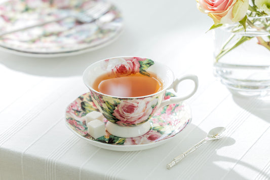 White Floral Toile Fine Porcelain Tea Cup and Saucer