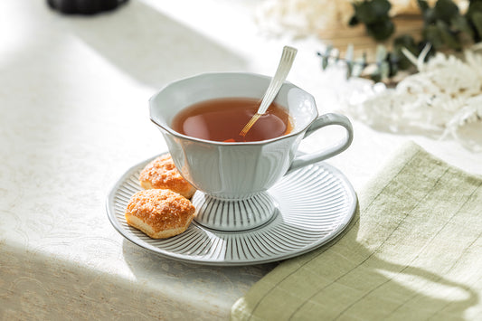 Ivory Grace Reactive Glaze Fine Porcelain Cup and Saucer