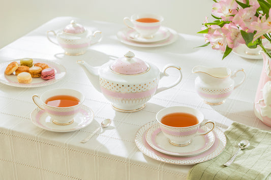Pink Stripe with Gold Dots Fine Porcelain Tea Set