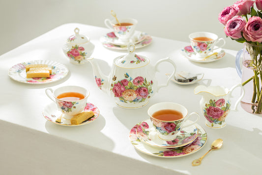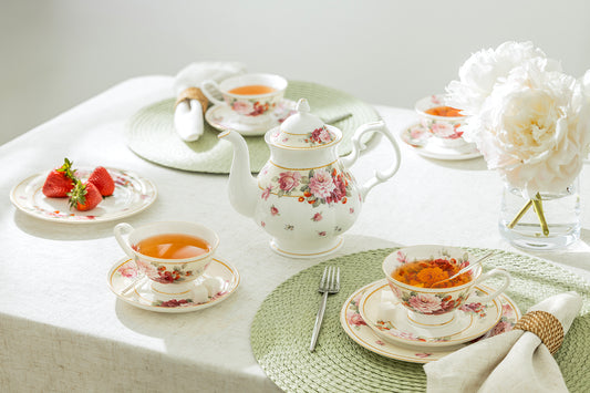 Peony and Strawberry Cream Bone China Tea Set