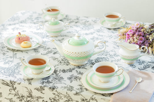 Mint Green Stripe with Gold Dots Fine Porcelain Tea Set