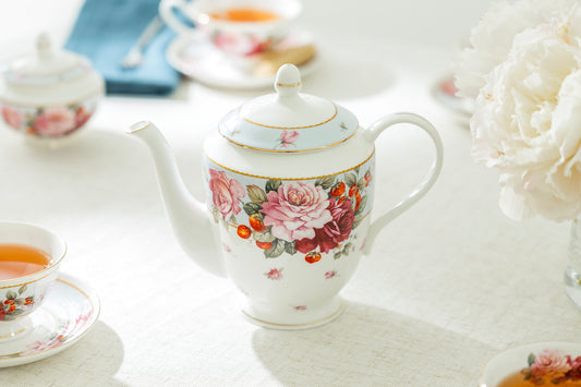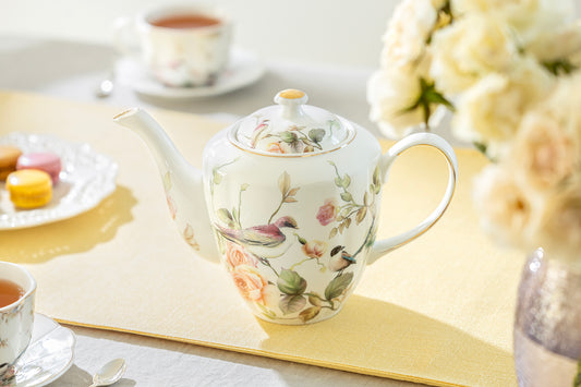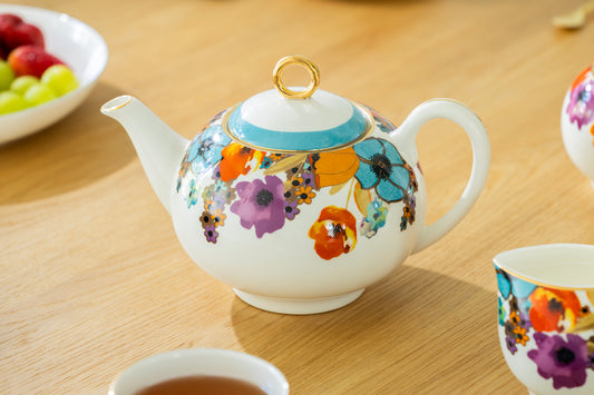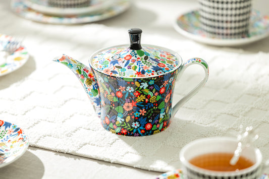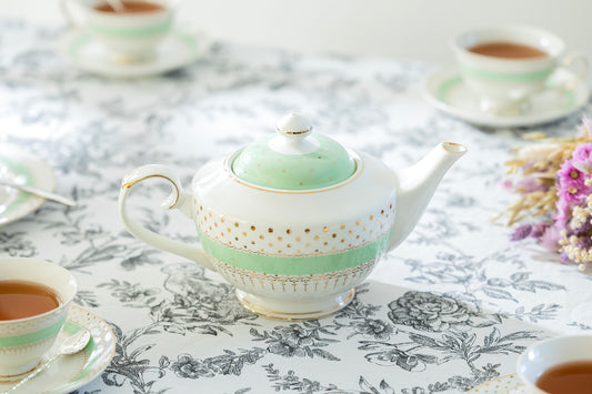 Mint Green Stripe with Gold Dots Fine Porcelain Teapot