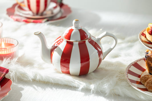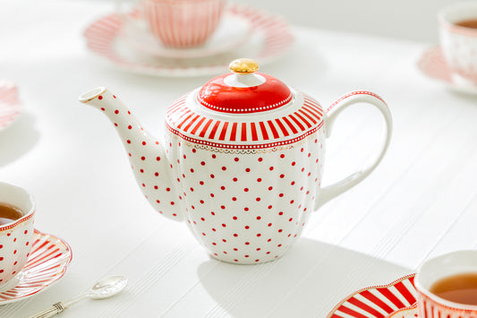 Red Josephine Stripes and Dots Fine Porcelain Teapot